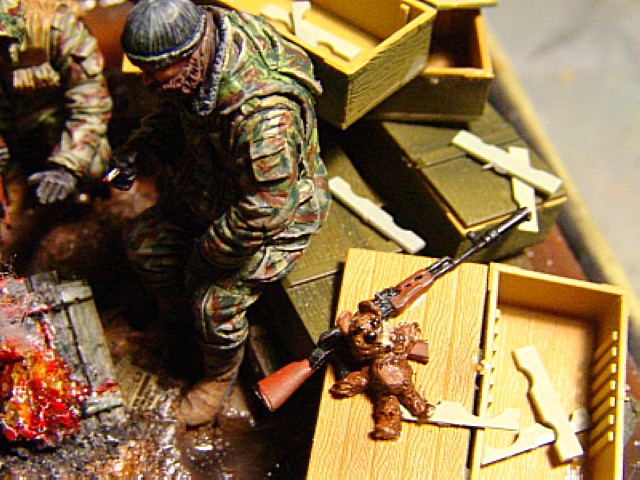 malear, все правильно! Я тоже ни за какие деньги не продам свою самую удачную диораму. Все время на нее смотрю и думаю, что смог бы сделать еще лучше, но поздно! Теперь просто не торопясь стараюсь делать все вдумчиво и аккуратно, благо в офф-лайне всегда есть Анар по росписи фигурок, а по скульптуре и композиции все время списываюсь с Володей Демченко.