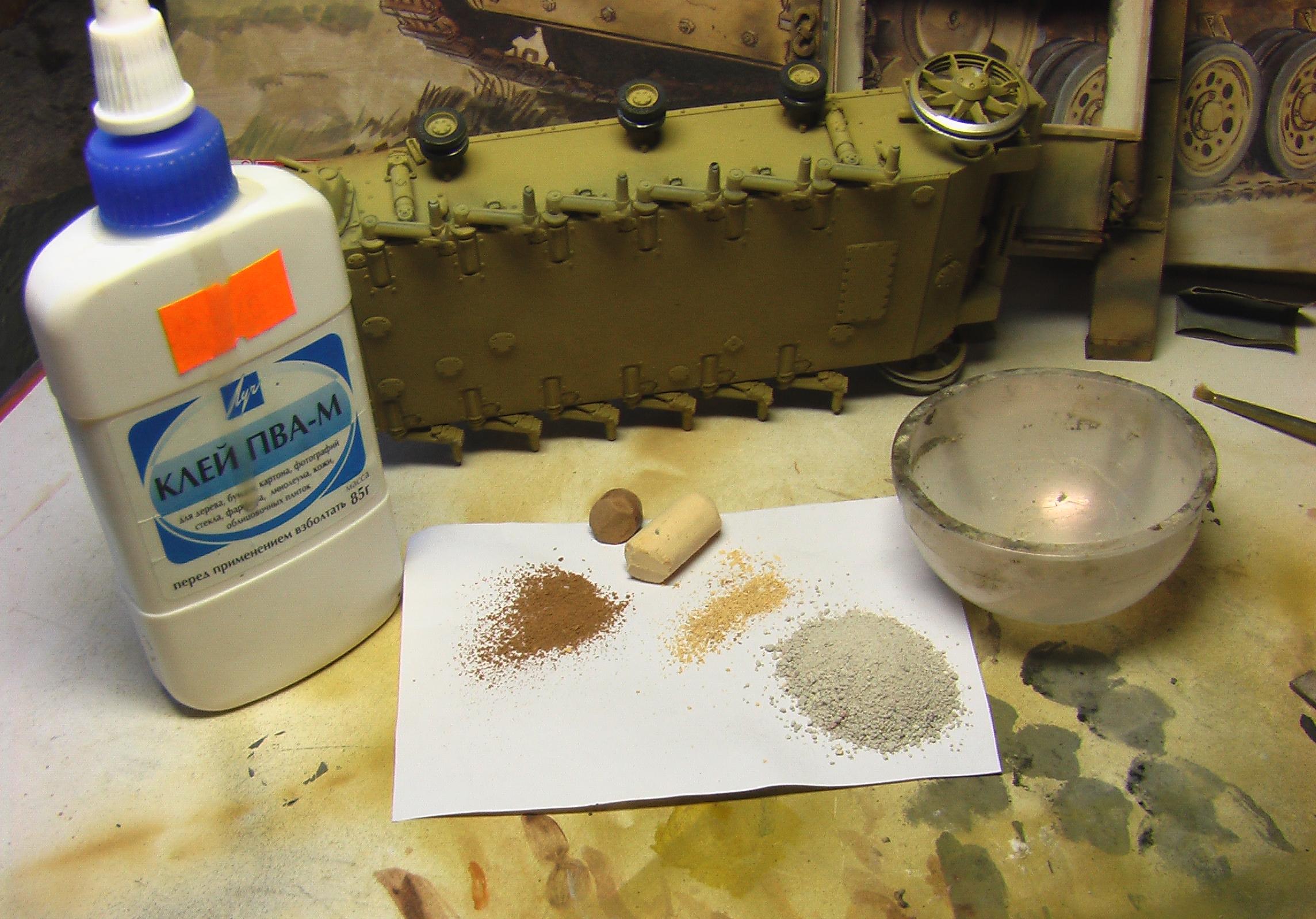 Честно говря даже представить себе не могу как это возможно.Гусянку собирал всей лентой сразу.В инструкции указано количество траков,которое понадобиться.НО!Не всегда это правда.Тут нужно смотреть по ходу работы.Кладем на столе трак гребнем вверх.Капаем мааааленькую каплю клея в углубления под следующий трак(тут я использую только клей с иглой "faller"у него игла тоньше,чем у Ревела,но это не принципиально.Можно и Звездовский кисточкой наносить.Но ели клея будет мало,то потом все развалится.)и так один за другим,пока не соберу всю ленту.Занимает минут 20-30.Собираю обе сразу.Катки и звездочки на сухую ставим на место.Но садиться должны плотно.Не падая.Не всегда получается так,тогда можно на каплю ПВА посадить.Ну и как только закончил вторую ленту,первую можно накидывать на катки.Огибаем звездочку,поддерживающие катки.Делаем провисы.Лента мягкая и великолепно гнется.Соединяю ленту по низу,обычно.Так удобнее.Накидываю вторую и оставляю на следующий день.Все снимаю и крашу по отдельности.Никаких проблем.Не на всех моделях можно так сделать.Иногда приходится делать ленту из двух половин.Передней и задней.Так и красить.Потом уже при сборке она будет стыковаться сверху и снизу.