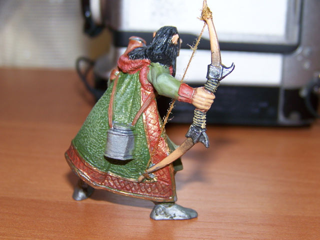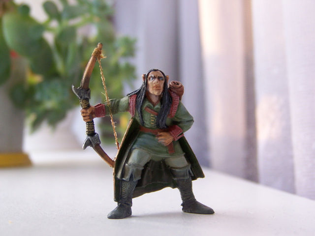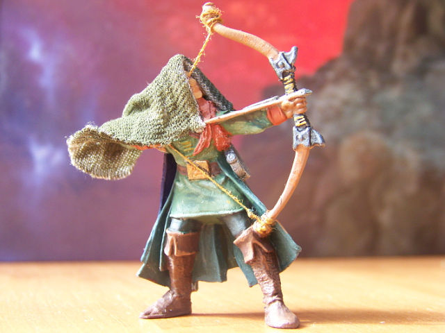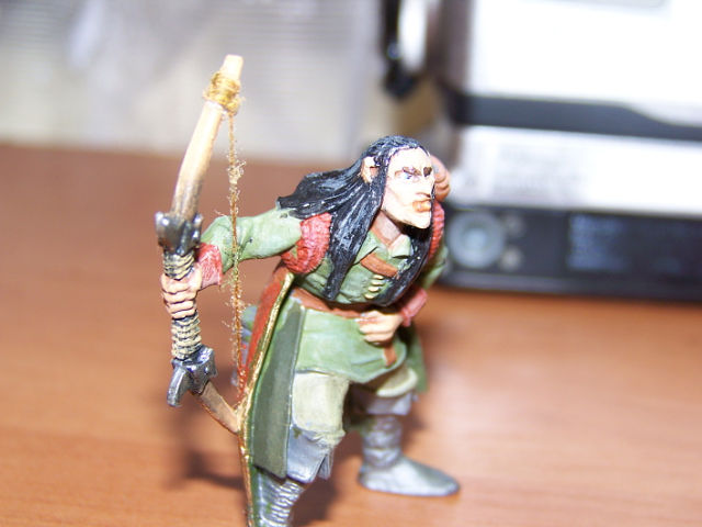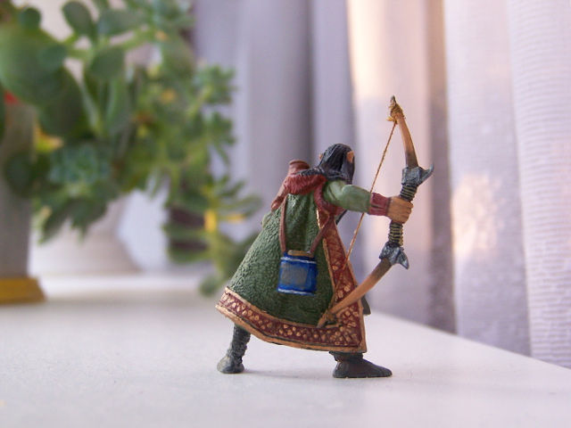 Закончена работа над очередным эльфом для виньетки. Напомню, что этого парня пришлось модернизировать. "Свернуть" голову, натянуть тетиву на лук. Есть и стрелы, но они пока ещё не заняли своё место в колчане. При покраске использованы масляные и акриловые краски.