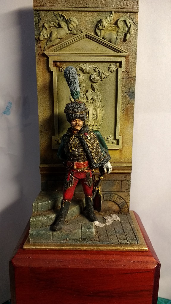 Когда вчера стал пылить сапоги, заметил, что я погнул саблю, и после выпрямления поставить фигуру так как была нереально. Пришлось дырку под винт зашпаклевать, и просверлить новую, вечером сфоткаю. По новому получилось лучше - фигура стоит "надежнее", и опирается как на носки, так и на каблуки...