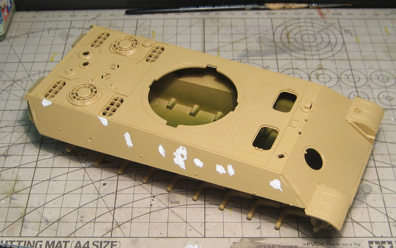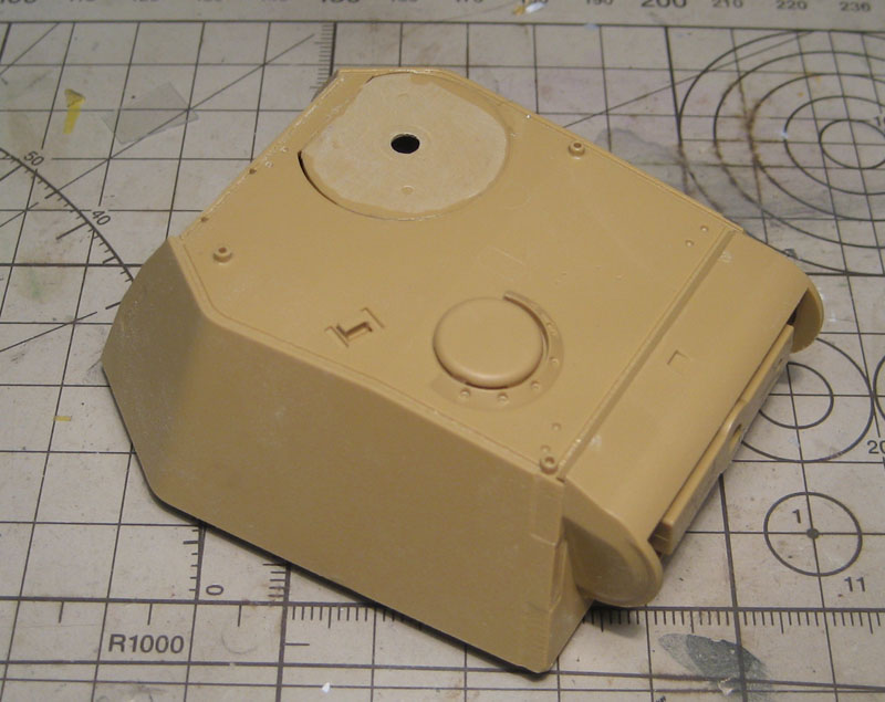 Днем замазал ненужные отверстия в бортах и шов на крыше башни.