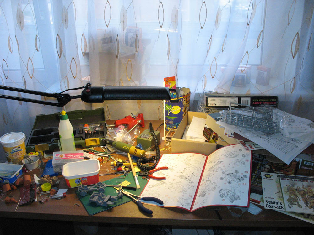 Если кому интересно, то можете посмотреть мое рабочее место, то есть три места, у меня три рабочих стола - на тесноту слава богу не жалуюсь. Вот в таком ср..е (простите меня за мой французский) я и работаю.