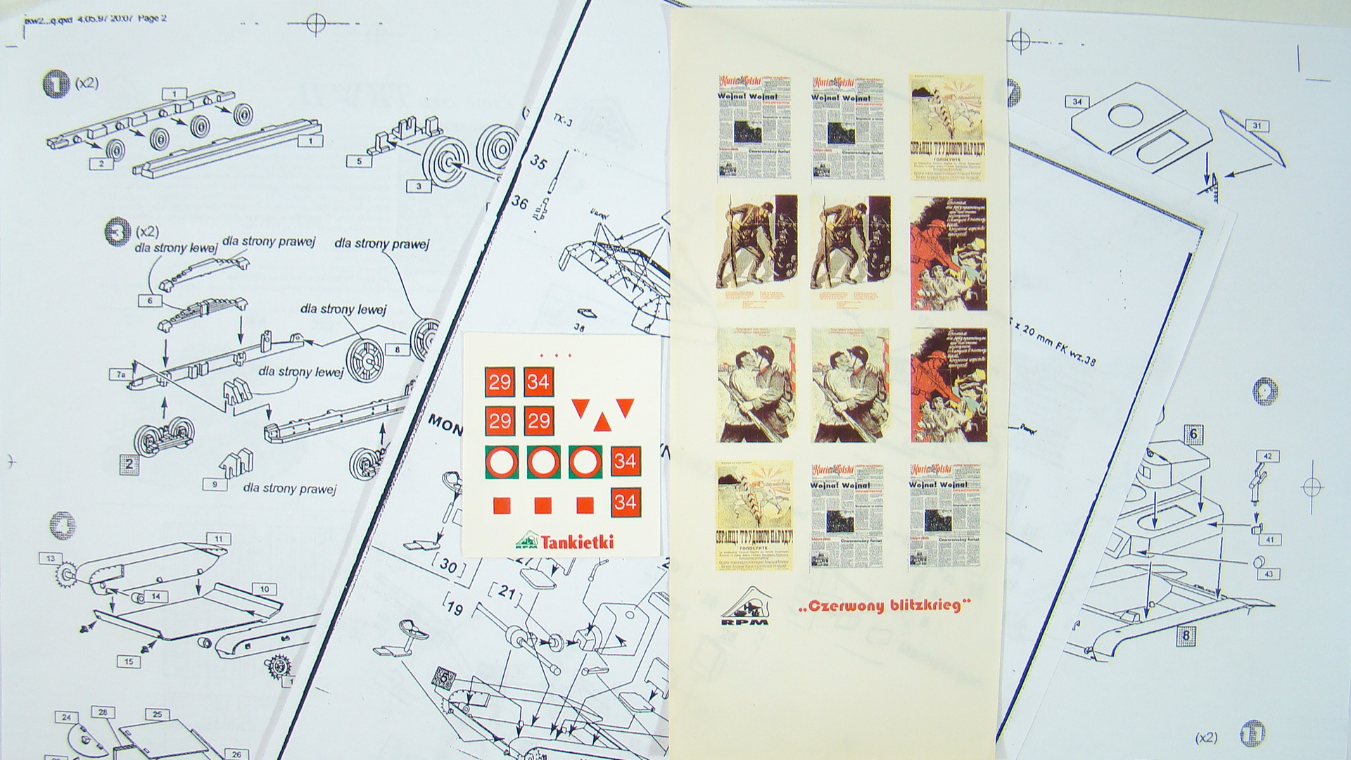 В на боре дается достаточно деталей и вариантов вооружения чтоб собрать около 5 вариантов танкетки,(что может объяснить вдвое выше цену чем на обычный набор танкетки).Изначально я брал самый необычный набор ,но потом начав собирать информацию и поняв что приобретенный вариант был лишь экспериментальным решил делать модель той танкетки которая бы участвовала..