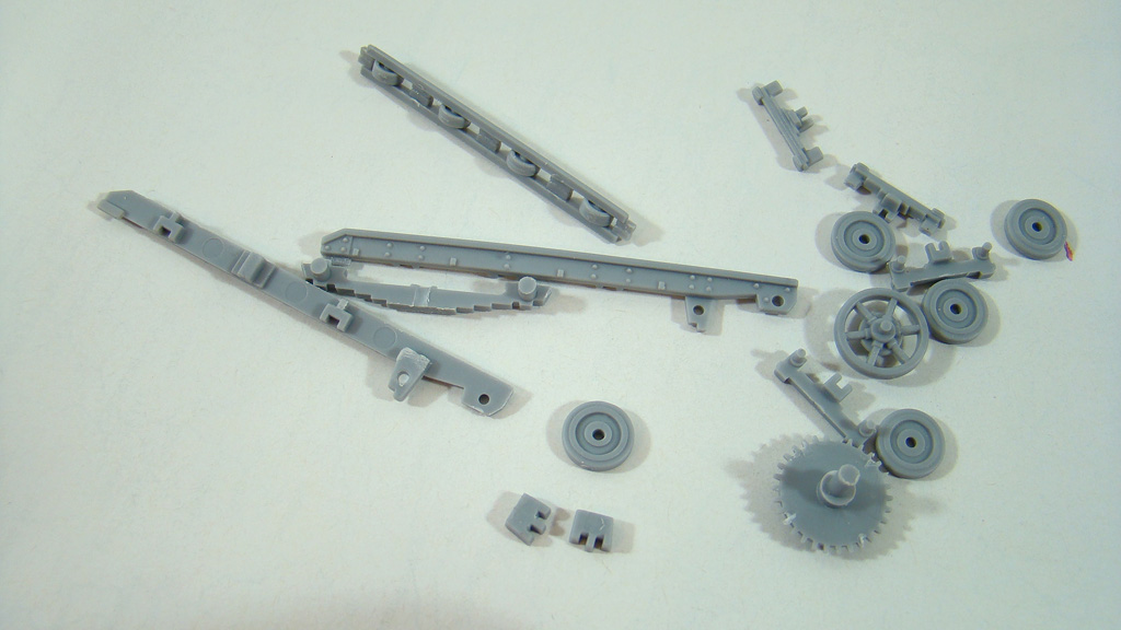 Дальше для разогрева отделил и обточил все детали для сборки одной стороны ходовой, как по мне самые замыленные литники,большие катки имели небольшое смещение,маленькие облой,остальные детали хоть и прошлось практически все затачивать не так уж и страшны.На это ушло 40 минут