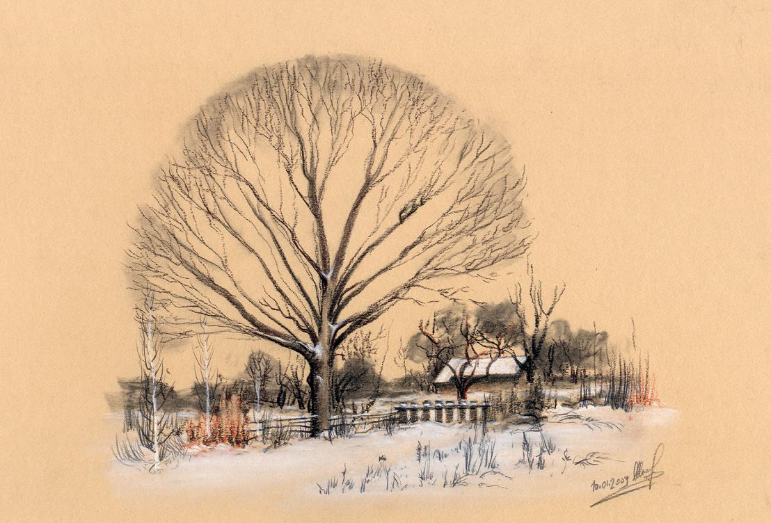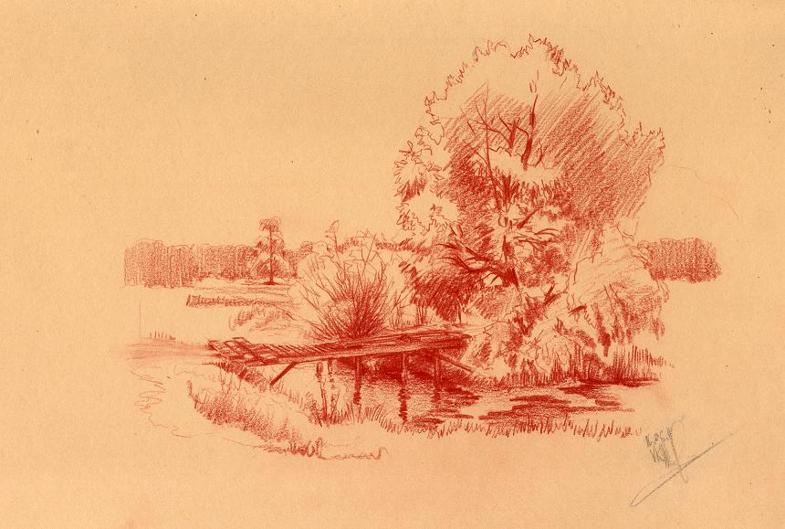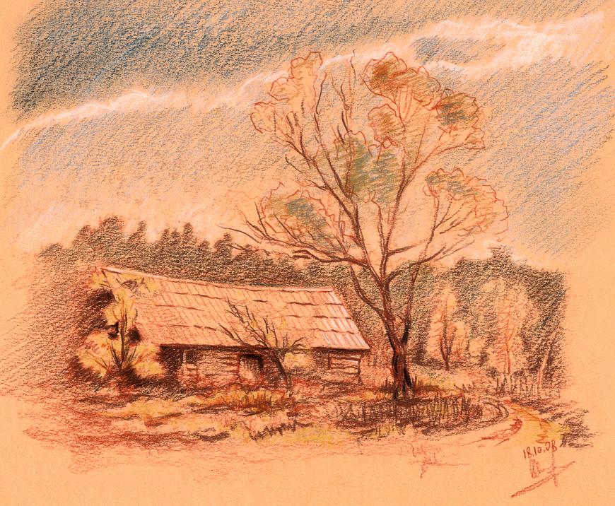 Все это сделано на природе, рисовал из машины. Цв. карандаши, уголь, цв. мел.