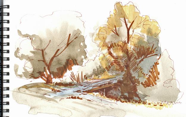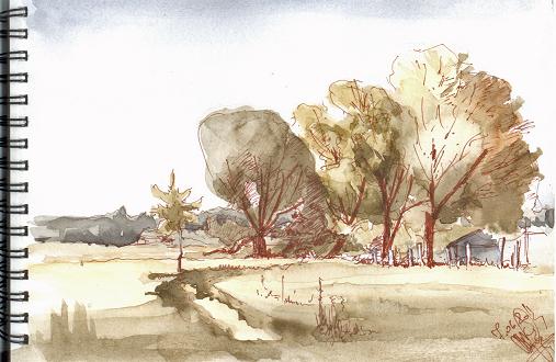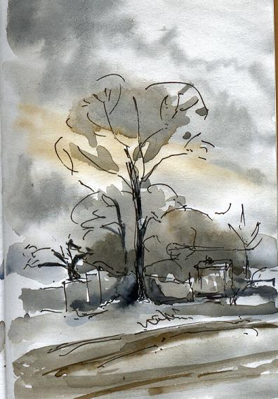 Выложу для контраста непродуманный спонтанный набросочек(5 минут в машине, и дома 10 минут акварелью). Иногда интересно сравнить с фото.
