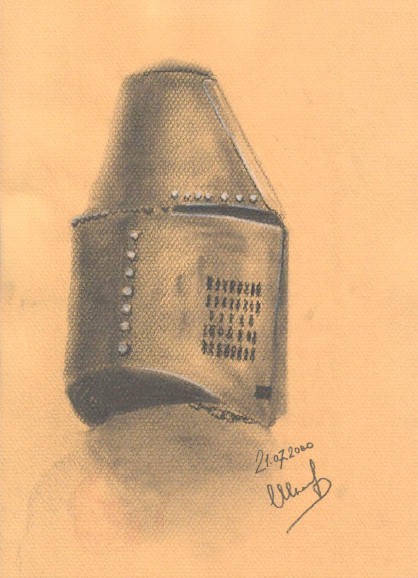 " наброска. Один - доспех 16 века, подарен имп. Максимилианом Генриху 8-му, рисовал по фото,не очень точно. Просто было интересно подробней разобраться, как он сконструирован.