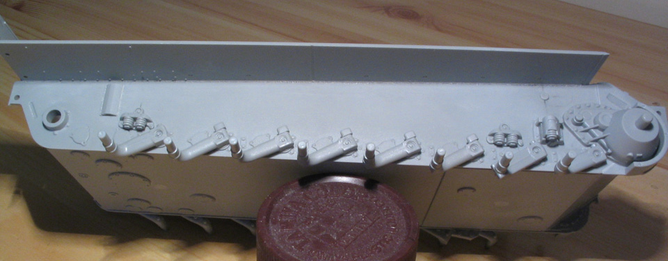 Вырез под задний люк сделан ступенчатым, а должен быть под конус, к тому же сам люк очень тоненький и кормовой лист тоже. Так что люк рекомендую не открывать, хотя он и сделaн рабочим.