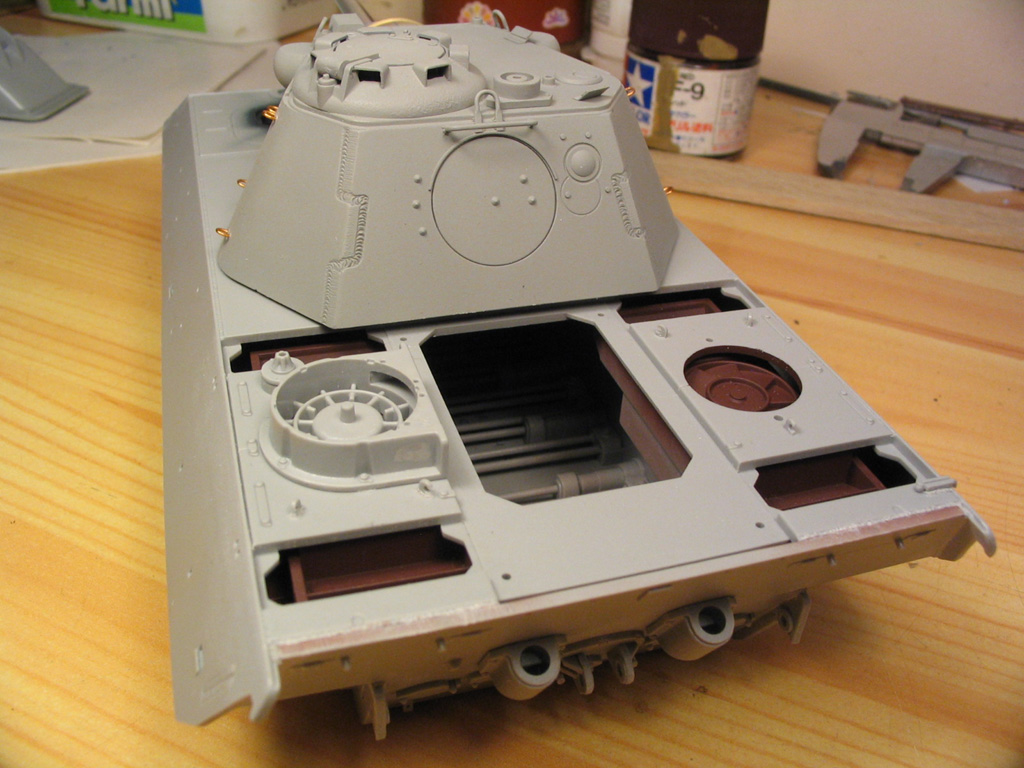 Vladislav Belinski, башня оставлена в грунте и судя по всему окрашиваться не будет? Собственно вопрос такой имеется. На цветных фото завода MNH представлены узлы и детали пантер как в грунте так и базовом жёлтом тоне. Означает ли это, что часть машин несла камо в виде полос прямо по грунту, а другие по жёлтому?