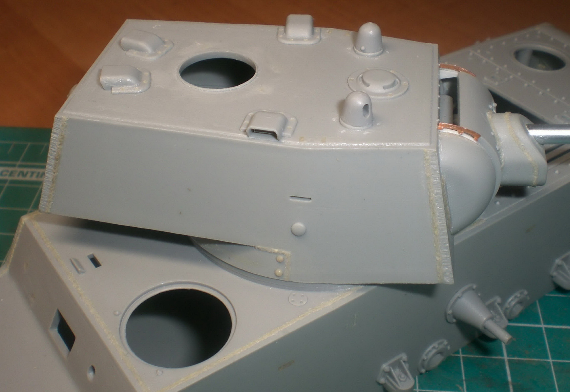 Между маской пушки и боковой бронировкой образовалась небольшая щель, пришлось наращивать листовым пластиком.