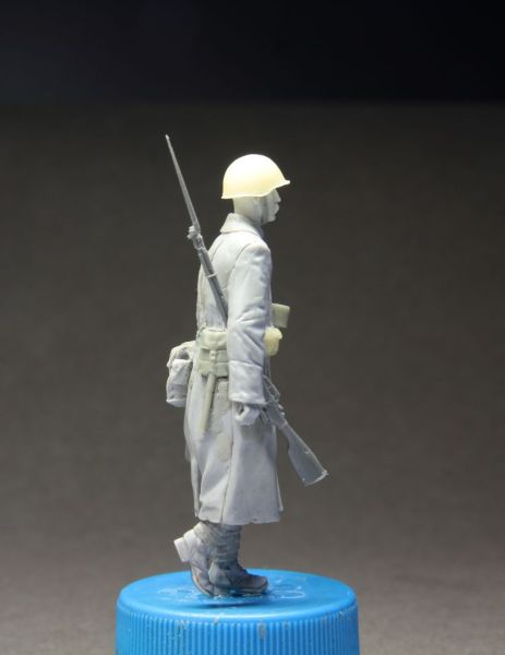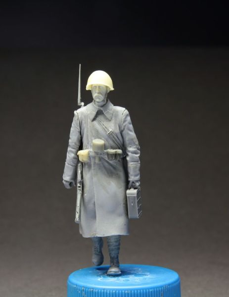 Фигурка "диорамная", чем объясняется ее обвес, помимо нее будет еще 7 конверсированных солдат (5 немцев от Сталинграда, советский пулеметчик от А.Зеленкова с Максимом и советский солдат с фаустпатронами от БРАВО6).