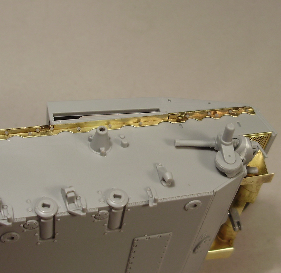 И тут сюрприз сюрприз - полная фотография машины показала что есть бортовые экраны. Точнее по правому борту они были, по левому борту как минимум начало есть. Так что их дозакажу в ближайшее время, в модель вложить их забыли. Но вот тут есть одна непонятка - какие-то они странные, то есть штуговские экраны обычно состояли из 4 больших пластин. Передняя была трапецевидной формы, но все таки достаточно крупной, в то время как на фотографии видно маленький треугольный экранчик по типу тех что стояли на четверках.
