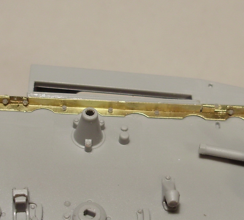 собрана кормовая часть, выхлопные трубы были рассверлены, дефлектор был чуть помят для придания жизненности. Крепления полок срезаны и заменены травлеными (используеться вояджеровский наборчик PE35396 ), болтовые крепления -изделие Мастер клуба.Ещё кое где необходимо доделать сварные швы.