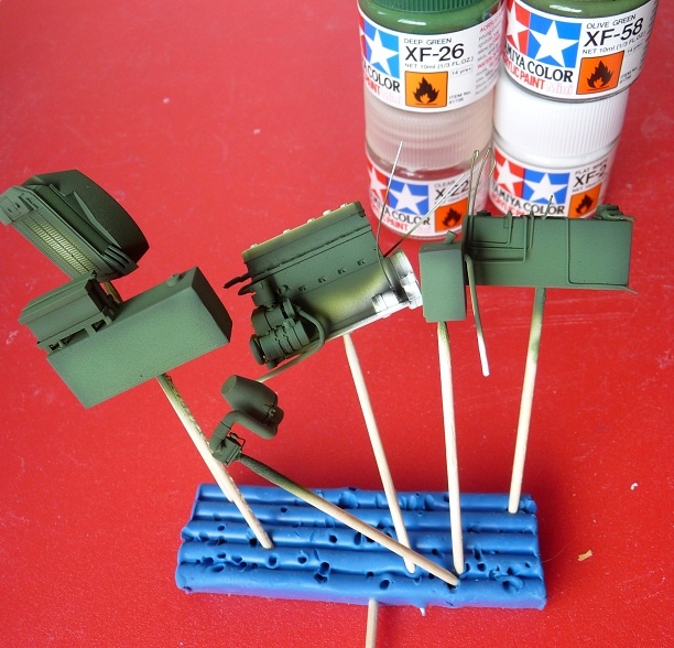Подготовил к установке проводку и патрубки системы охлаждения, а затем все внутренности загрунтовал при помощи грунтовки Vallejo Game Color White Primer 72002.