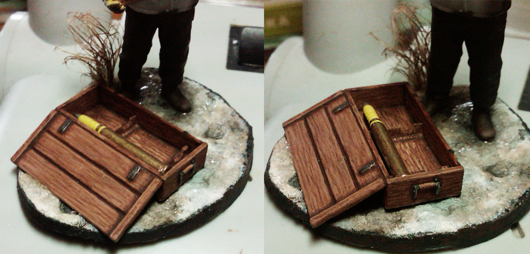 ХомяК, мне очень нравится! Может стоит все-таки (Демченко уже намекал!) перейти на смоляные фигурки и аксессуары?! Уровень исходных материалов не дотягивают до уровня росписи! Стоит, наверное, что-то выбрать из доступного по почте, типа ТАНК и 5,45. Там и ящики и снаряды и оружие достойно в смоле сделаны.