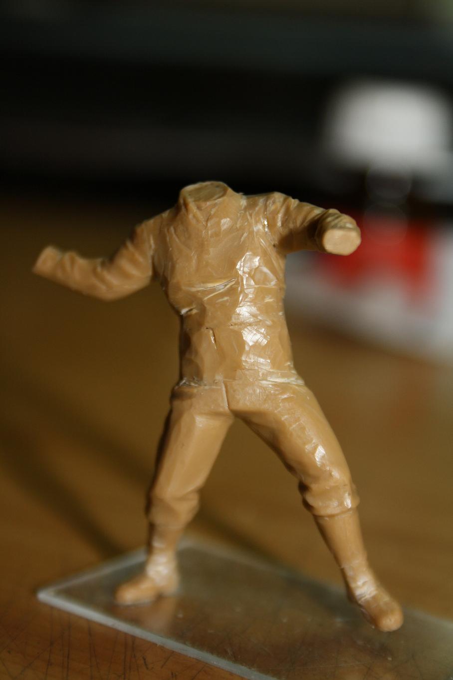 и вот вторая моя работа с конверсией. Панк-анархист. из одежды планирую сделать ему лётную куртку "бомбер", гриндера, характерный шипастый ирокез и наверное шарф. но вот про шарф не уверен. а, да. главное, что этот миролюбивый товарищ будет кидать бутылку с самым лучшим коктейлем. Коктейлем Молотова.