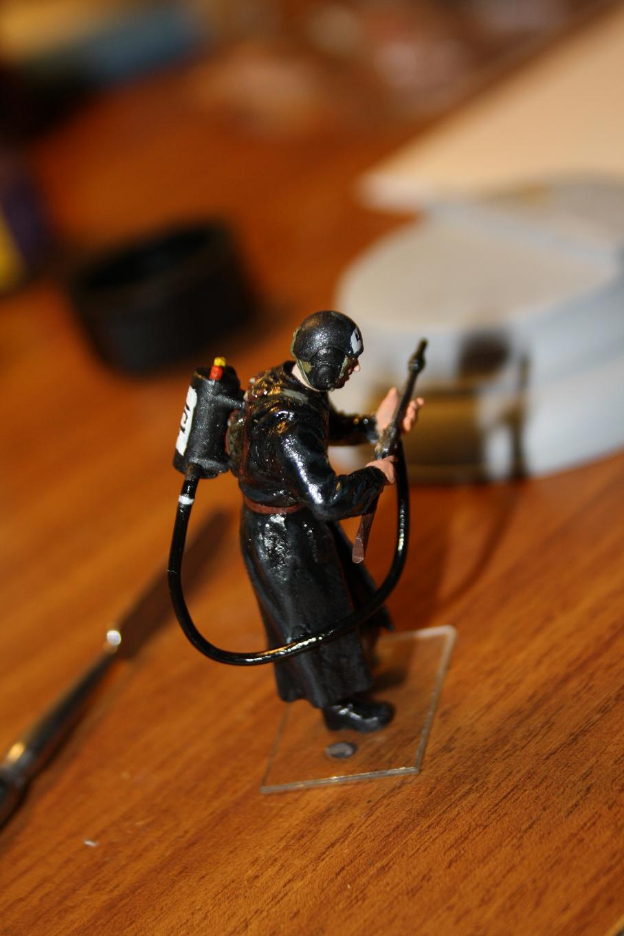 Доделал фигурку пожарного из книги "451 градус по фарингейту". И теперь занят основанием. Думаю положить на него обгоревшую книгу, на которую смотрит боец, с таким презрением.