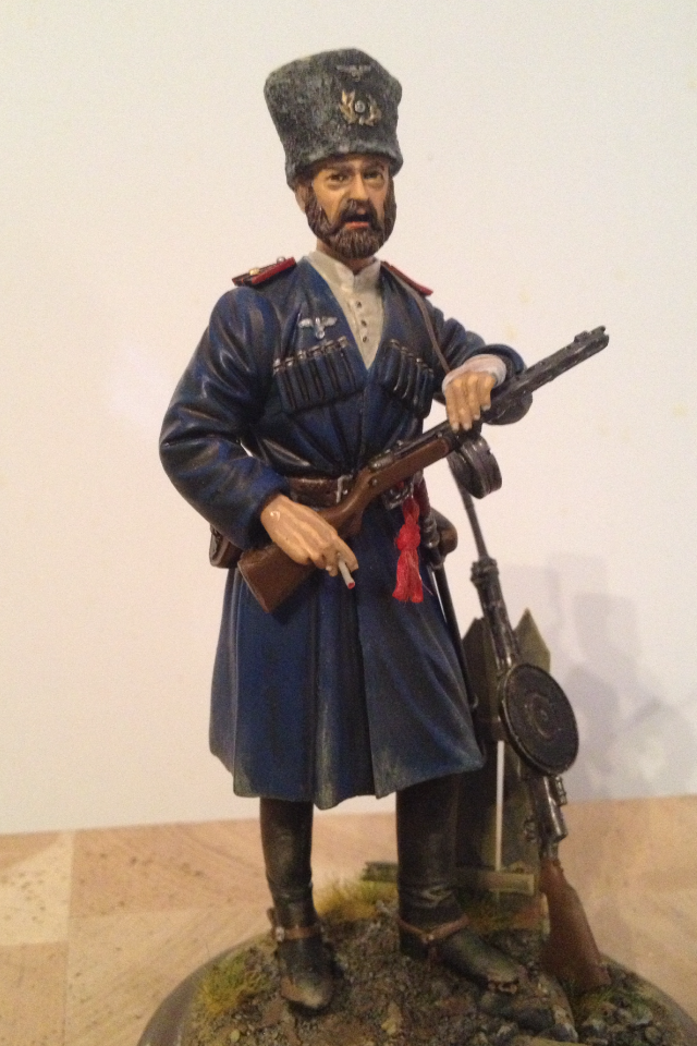 красиво сказано ,но именно этой противоречивосьтю и привлекла меня эта фигурка ,с одной стороны это свирепый бородатый казак ,c другой перебещик казачок на службе рейху .Жаль что я еще не владею в совершенстве художественными навыками что бы в максемалной реалистичности выполнить эти модели