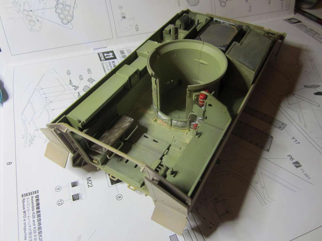 собрана частично башня со всей требухой. При установки крашенных перископов очень тугие посадочные мест под них, можно повредить покраску фасадного стекла.