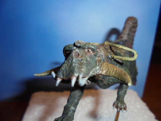 А что вы хотели за бюджетные 700р. в таком масштабе?Миниатюра делается не для выставки и даже не для галлереи,у меня не тот уровень.Переделывать все смысла нет.Задача была попробовать новые технологии,краски,приемы,послушать советы.Была,например,идея оторвать зверю ноги и сделать что-то наподобе шарниров как в "Звездных войнах".Но что-то не решился,да и долгострой мне не нужен.Кроме того фотки пока подводят,но будем тренироваться.С уважением!