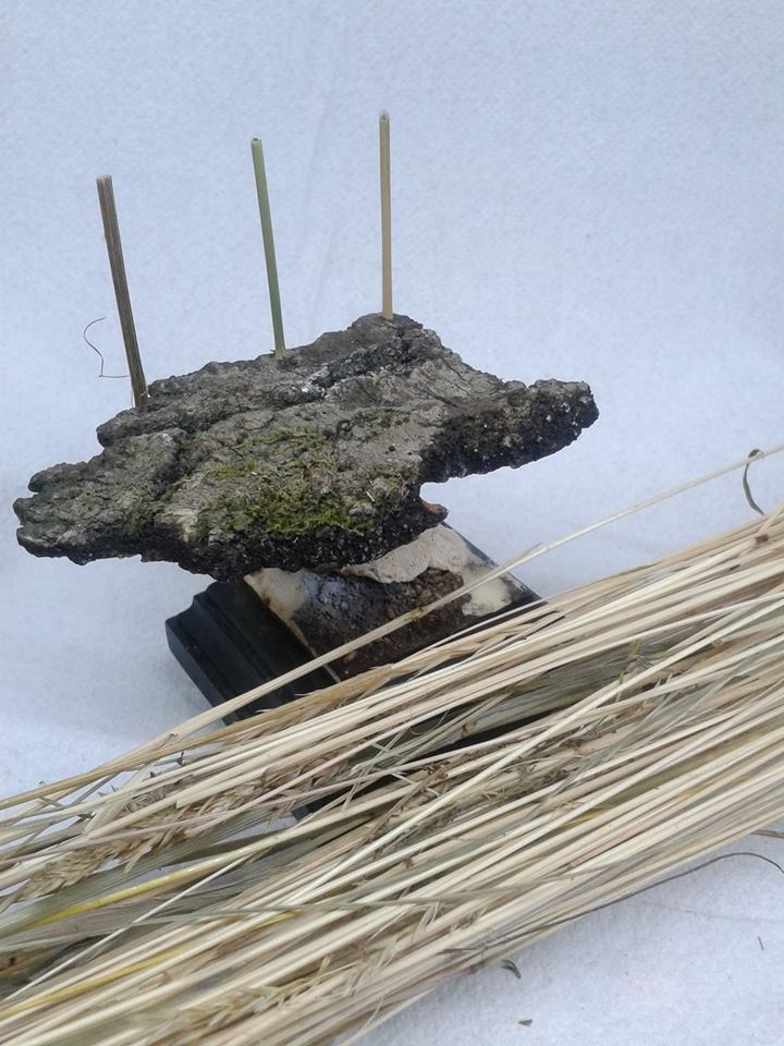 Основание для виньетки решил сделать непростое.Использовал кору дерева.Усилил гипсом