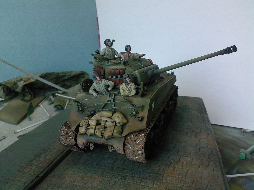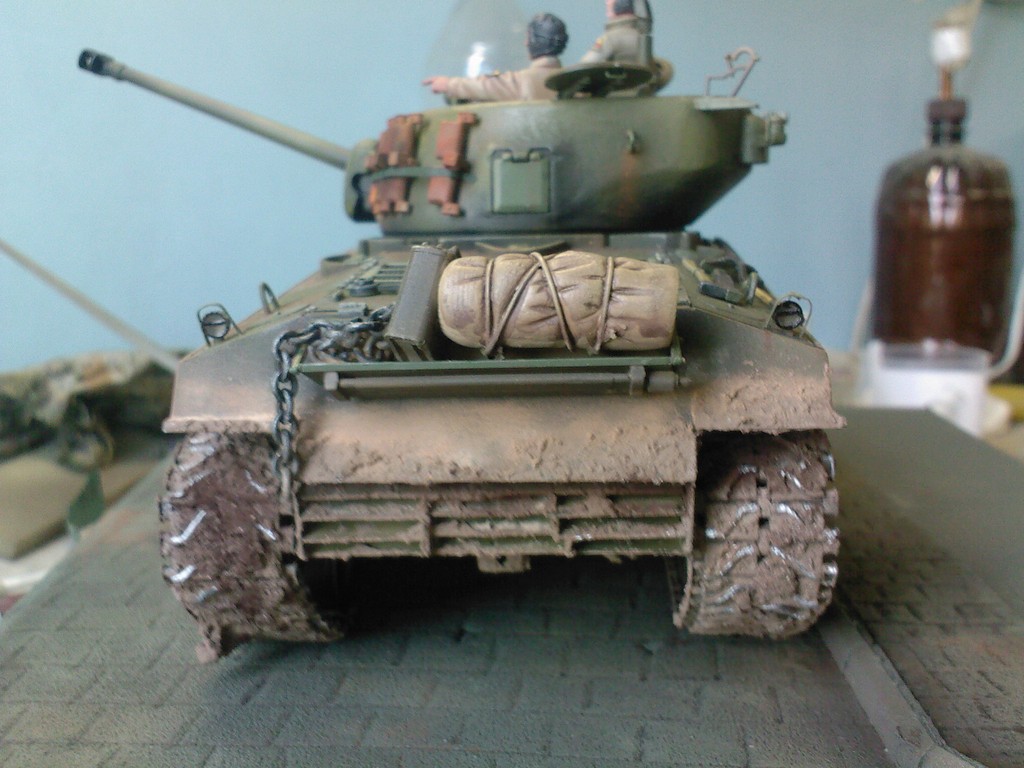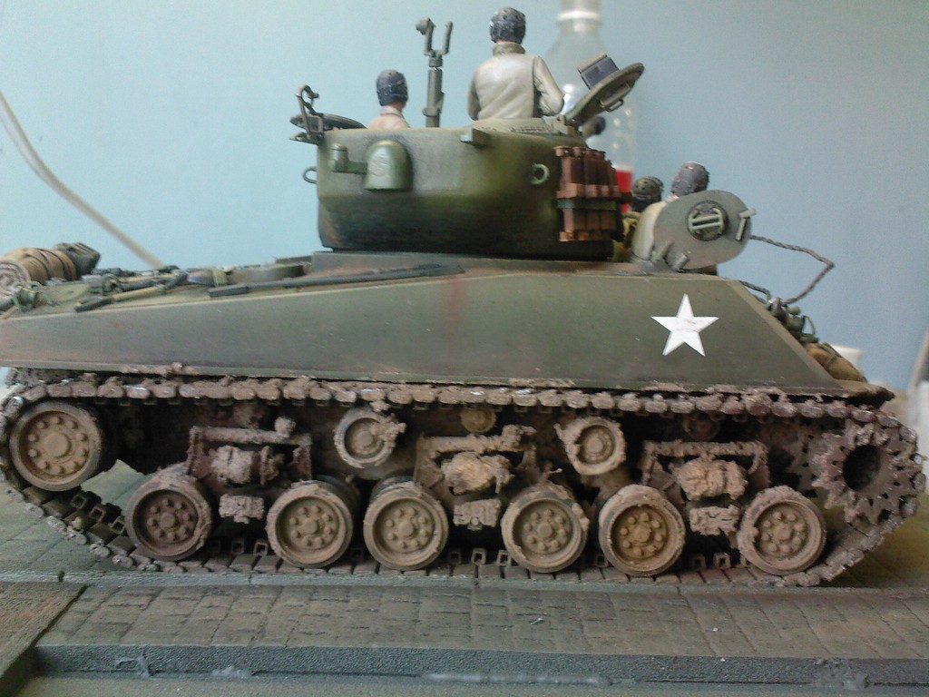 Петров Андрей, подставка просто для антуража, на выставку "Шерман" поехал по уши в сельской грязи французских дорог. Потом конечно же сниму аккуратно грязь с бандажей, самому глаз режет