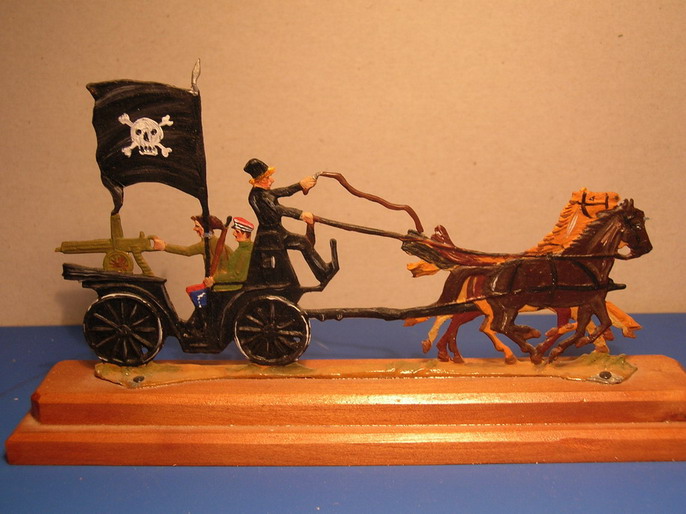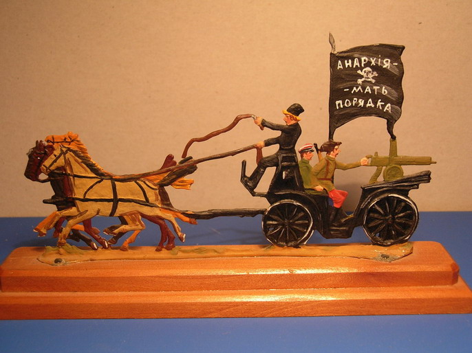 При очередном безумствовании (уборке пыли в своей комнате) обнаружил оловянную фигурку махновской тачанки которую когда то подарил мне мой товарищ В.Мельников. Решил показать её Вам. Просто так,для разнообразия.