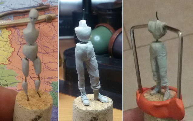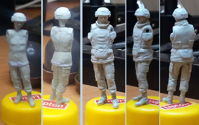 4. Для того, чтобы остались поднутрения под зимней курткой, облепил фигурку полимерной глиной по их месту.