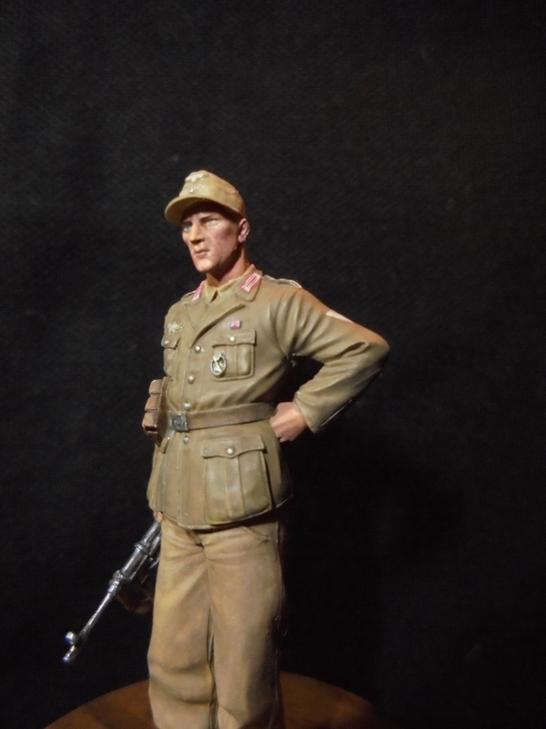 Добрый вечер!Ну я обещал конструктивной критики,сейчас напишу.На первый взгляд,когда берешь фигурку в руки вроде все замечательно.Облой,небольшие литьевые швы легко устраняются,стыковка головы и правой руки изумительная без зазоров.Пузырей и каких-то явных косяков нет.Ну я,понадеявшись,по-быстрому загрунтовал и стал красить.Тут и выползли какие-то микроязвочки и скрытные литьевые швы.Самое обидное шов проявился на левой стороне лица после базового покраса.Пришлось несколько раз шпаклевать,шкурить,но ступеньку полностью убрать не получилось.Надо было полностью отмывать фигурку,шпаклевать все лицо и заново красить.Но лень-матушка.Еще дал маху-отдельно красил руку и туловище.После сборки все равно пришлось шпаклевать и подбирать цвет.Лучше было после грунта собрать и красить вместе,труднодоступных мест там нет.Урок на будущее.Да,и когда я крашу,очень долго рассматриваю,верчу фигурку.И у меня возникло"дежавю"что где-то я это уже видел.Вспомнил и нашел на своей старой диораме"дрегоновскую"фигурку в точно такой же статике и позе.Но,правда,та дубовая пластиковая с этой рядом не стояла(а вы говорите пластика).Поэтому,если"Скале" перепакует на свой манер всего"Дрегона",я буду только рад.Весь вопрос в цене.Теперь насчет наборов краски.Всегда считал этот товар коммерческим разводом,но на могу удержаться.Манят меня с детства красивые коробочки с картинками,вкладышами.Но когда берешь в руки эти вкладыши с инструкциями по покраске,возникает ощущение,что это квест,а коды забыли положить.В частности в этих наборах показано как можно покрасить в различные базовые цвета,но не разложено по полочкам,как высветлять и затемнять,как смешивать краски,в какой последовательности.Кстати покрасить одним набором в цвета как на боксарте,у меня не получилось,пришлось открывать второй набор,да и свои краски использовать.Так что смотрите и думайте сами.То,что"Скале"не пошла по пути"Альпина"и не стала выпускать"лубочных"солдатиков,уже большой плюс.А дальше посмотрим.И улыбайтесь,господа,улыбайтесь!