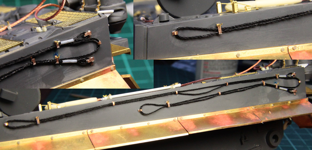 Сегодня за 3,5 часа чистого рабочего времени сделал тросик для натяжения гусеницы. Сделал полностью с нуля из капроновой нити и меди, не смотря на наличие травленки с тросиком от Вояджера. Тросик из набора толстенный и жесткий, травленые элементы крепления тросика жутко переразмерены - в общем, никуда не годятся. Ну что за люди эти китайцы? Не могли сделать всё в нормальных размерах и дать тросик по-тоньше? Вот тут можно посмотреть что в наборе: http://voyagermodel.com/%5Cproducts%5C3 ... 062-05.jpg http://voyagermodel.com/%5Cproducts%5C3 ... 62-011.jpg