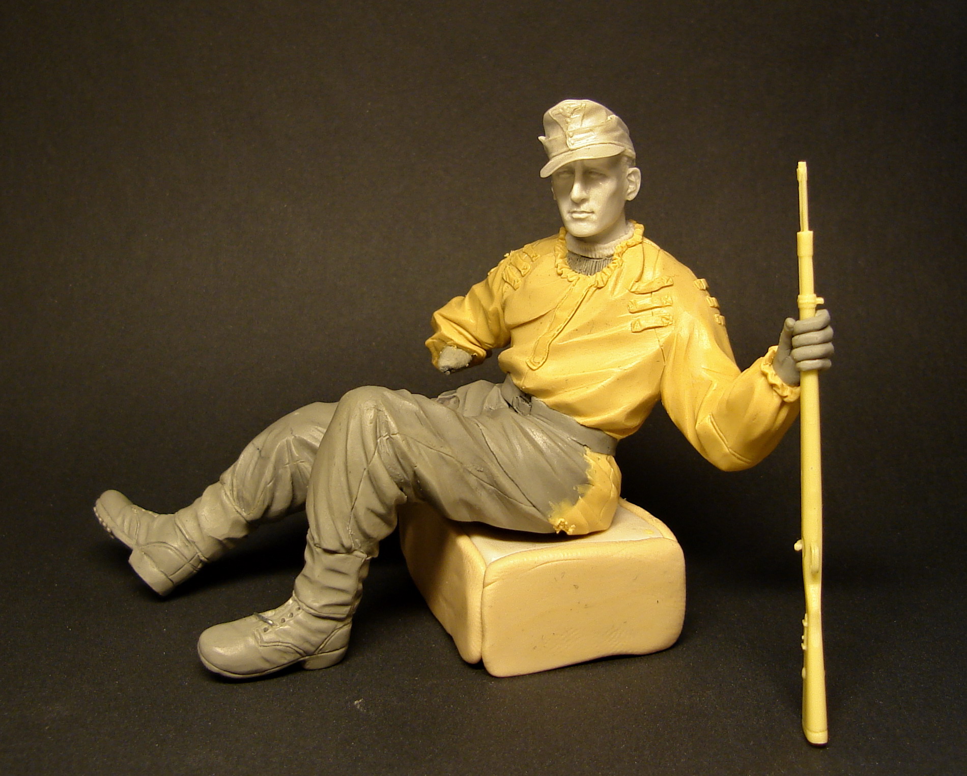 Вот такого немчика доделываю. Масштаб 1/16, голова Альпайн, материалы - эпоксилин и Фимо