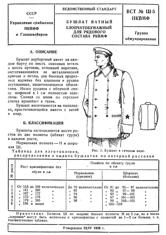 Насчет застежки бушлатов: дело в том, что в 30-40 годы ВСЯ форменная армейская двубортная одежда, застегивающаяся на пуговицы, шилась с петлями по обоим бортам. Как раз, чтобы дать возможность застегивать налево или направо, по желанию ее носителя. Не знаю, с чем это связано, то ли с заботой о левшах, то ли еще с чем - но фотографии с застежками на разные стороны шинелей, например, не редкость.
