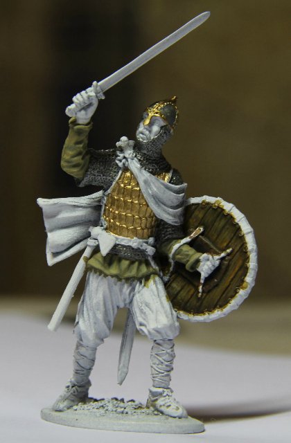 Я расписываю фигурку русича дружинника, ЕК Castings на диорамку с рабочим названием "Стычка в лесу", может потом переиначу название.