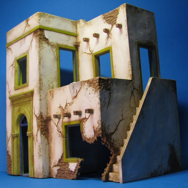 Scorpius, Рамы, окна, двери как раз и будут синими, Вы приглядитесь повнимательней. А вот как бы глиняный наличник, обрамляющий окна и двери, мог быть такого грязно-лимонного цвета, в принципе такого цвета мог быть весь дом или отдельно один из этажей.