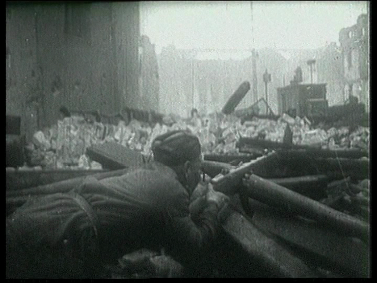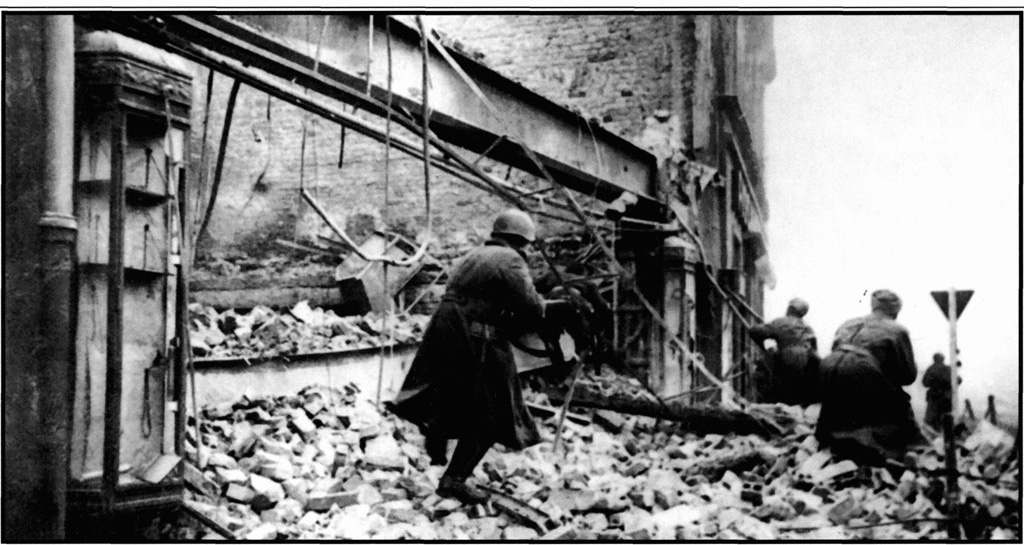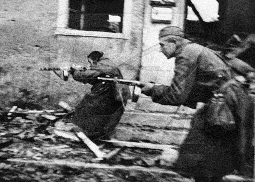 Следующий боец кидает лимонку в окно. На нем не часто встречающаяся в миниатюре (но присутствующая на фото) ватная куртка образца 1942 года.