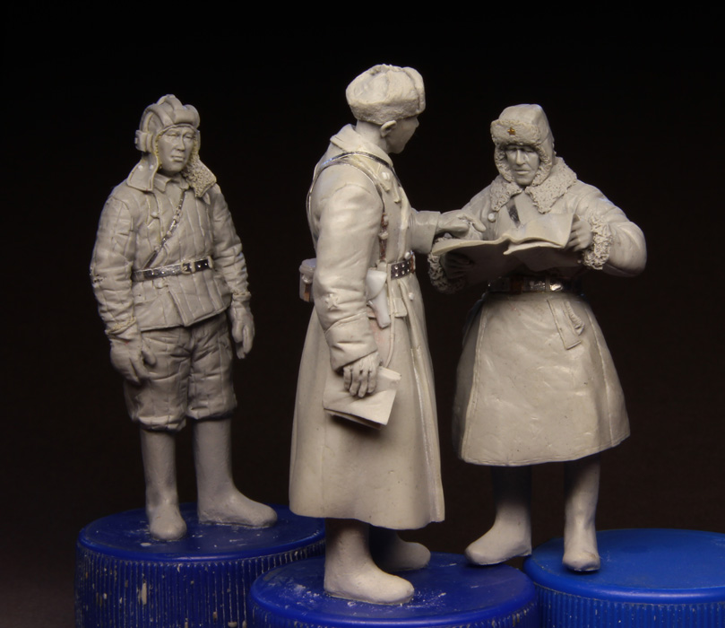Батальонного комиссара можно и на Финскую и на ВОВ сразу отправить, а танкиста и второго командира для финской нужно будет слегка конверснуть - убрать застежки на полушубке и сделать воротник-стоечку для танкиста.