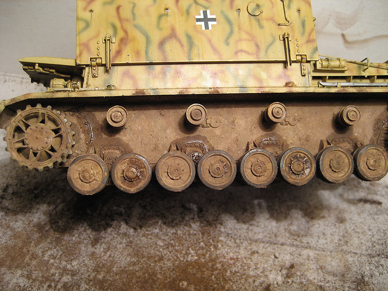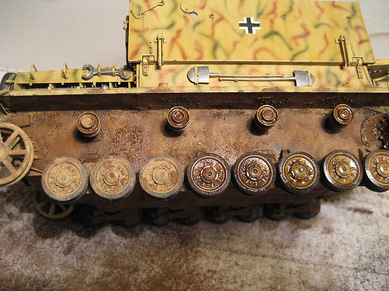 После высыхания, в районе шарниров и ступиц была нанесена миговская смесь для имитиции потеков.