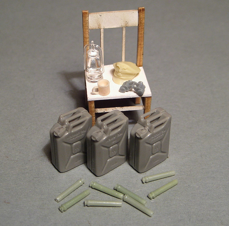Ну и мелочи: фуражка командира, его же чашка с кофе и бинокль, керосинка, стреляные гильзы и канистры.