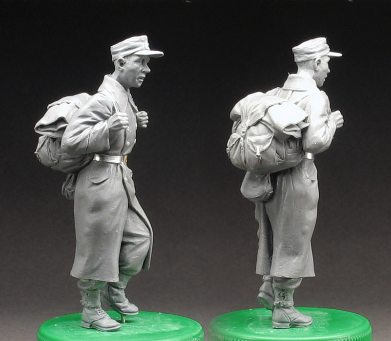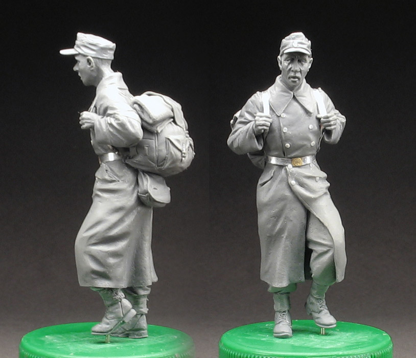 Егерь из него вряд ли бы получился - у него рюкзак не стандартного горного образца, а вариации на тему. В конце войны много чего подобного шили. Голову с длинной шеей делал специально, хотелось показать этакого нескладного призывника тотальной войны - не молодого, совсем не атлетического телосложения, про каких у нас говорят "не в ... (ну, господа гусары меня вероятно поняли), не в Красную армию". Кстати шею можно будет легко укоротить - голова будет отдельно литься.