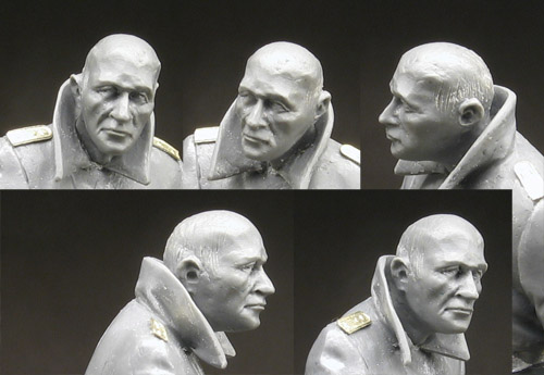 На счет роста, хм... да, я бы делал таких ребят по-меньше, но они будут выпадать из стандарта сформированного другими фигурками. Я уж не говорю про Блёскинских двухметровых амбалов с кажущимся игрушечным оружием в их руках. Тем более как-то недавно я уже был отпинан за фигурки маломерков. Так что пока я склоняюсь к 185 см. Например с миниартовскими танкистами на полевом совещании пленные немцы вполне органично смотрятся, хотя и ниже их роста. Эта серия фигурок не так самобытна и оригинальна как "Под огнем", их можно комбинировать со многими другими фигурками при создании диорам, поэтому от экспериментов с ростом я тут отказался. Хотя может сделаю какого-нибудь одного низенького офицера...