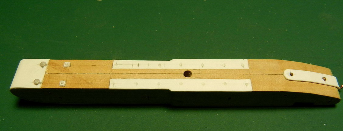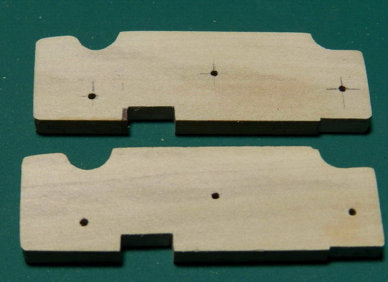 А теперь продолжаю "бой". Возвращаюсь опять к лафетам. Теперь на очереди лафет для 24 фнт. осадной пушки обр.1834 г.Будет ставиться на передок. Пришлось вернуться к любимому мной дереву. Ибо нет полистирола таких толщин, ди морока сним ещё та. Для начала показываю только деревянные части лафета. Короткие боковые станины с разметкой отверстий под болты крепления и вырезами под цапфы и ось.