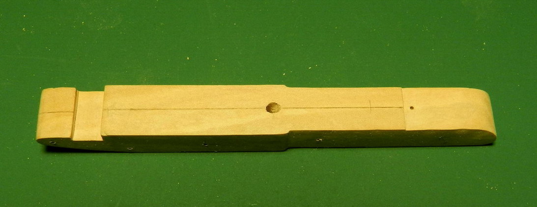 Деревянная лопасть боевой оси с вырезом под металлическую ось и подушка под казённик ствола в походном положении.