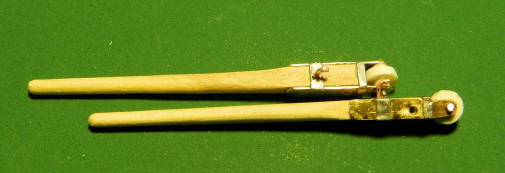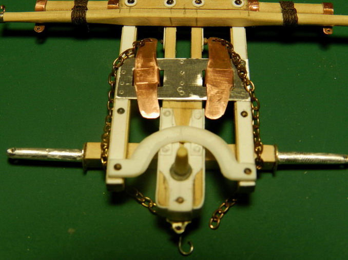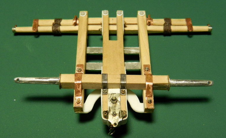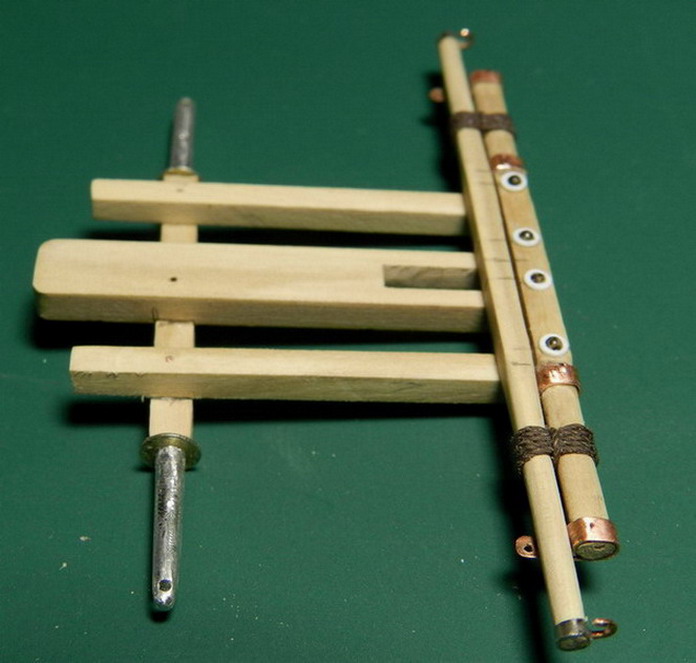Из латуни и медной проволоки спаял тяги (закрутни) от оси к неподвижной ваге.