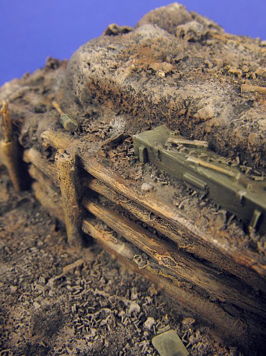 Марина Штей, на бруствере и под ним россыпь гильз, которые Вы покрасили под цвет земли.