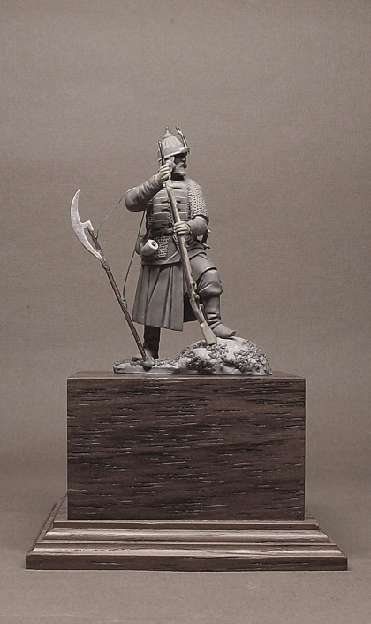 Фигурка называется "Пищальщик Ивана Грозного", надеюсь объяснять не надо разницу между поместным и пищальщиком. Еще раз ваши слова: "Конечно, сочетание пищали и бердыша с тяжелым доспехом не типично, встречалось очень редко, но вполне возможно". Могу я увидеть исторический источник на пищальщика с бердышом, в юшмане и ерихонке, что "вполне возможное" по вашему сочетание?