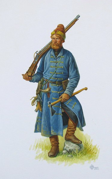 Заодно порадуйте историческим источником на сибирского казака на 17 век в такой бумажной шапке, с таким ружьем, и степенью одоспешенности.