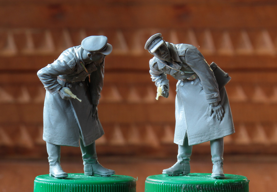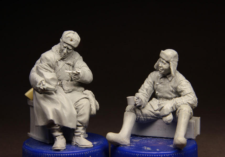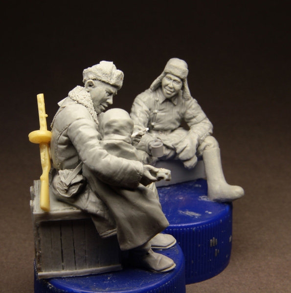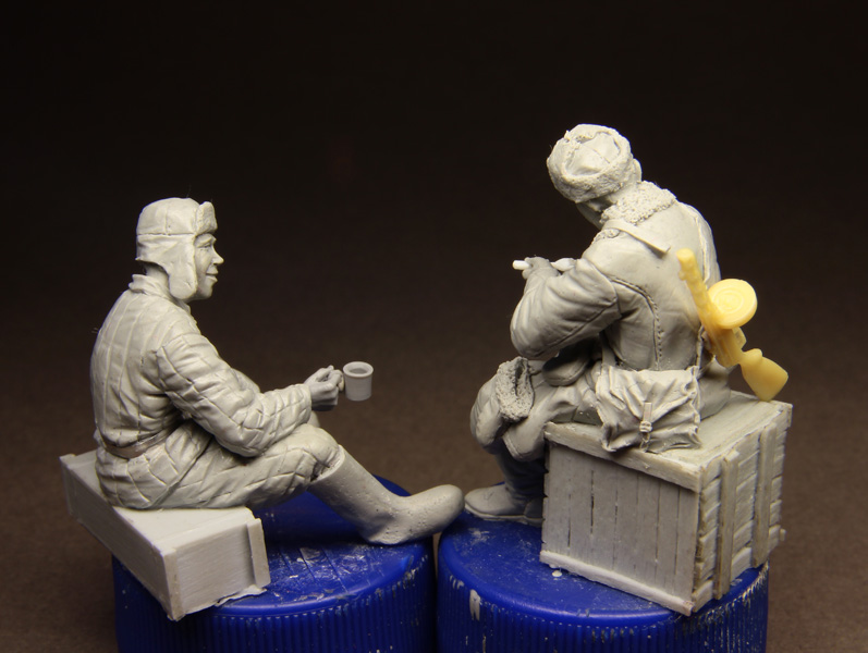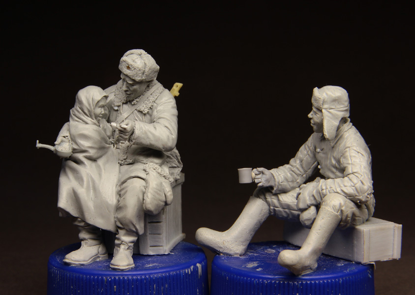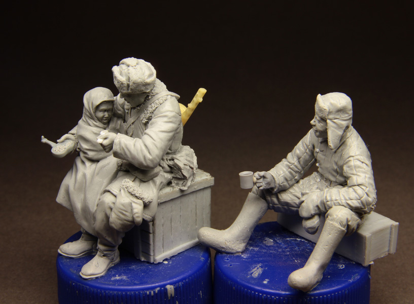 Первыми будут танкист и пехотинец, который кормит девочку-сиротку. Думаю, вот ещё, сделать ли танкисту чайник или отдельную фигурку с чайником сделать.