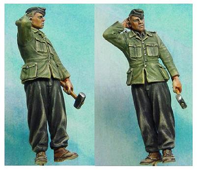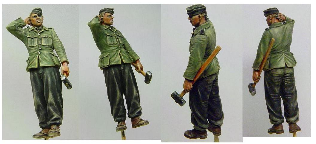 Роспись смотрится. Очень много внимания уделено деталям (складки одежды, запылённость). Немного не понял с цветом пыли на штанах: она имеет какой-то явный зеленоватый оттенок (особенно заметно на пятой точке у танкиста).Также показалось, что с тенями под глазами небольшой перебор, хотя лицо в целом расписано очень достойно.