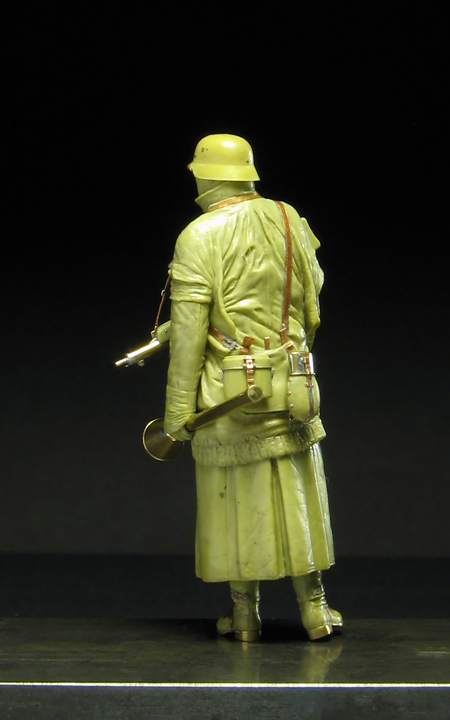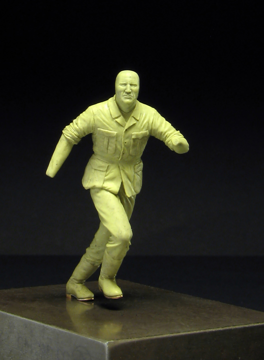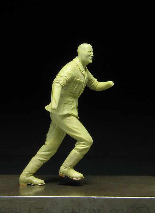 Михаил Осипов, для размножения всё и лепится, надеюсь, что скоро в тираж пойдёт. По поводу пятки - если её оторвать, тогда правую ногу нужно уже немного распрямить, а это другая фаза движения, мне же хотелось поближе к фронтовой фотографии позу сделать. На мой взгляд, так лучше. Он, когда нагрузится всеми прибамбасами, может плохо смотреться на носке, то если спортсмена бегуна лепить или футболиста, тогда уместней наверное - мужики те, налегке бегают, оторванная пятка им, самое то будет. Однако, всё от фазы движения зависит, в любом случае.
