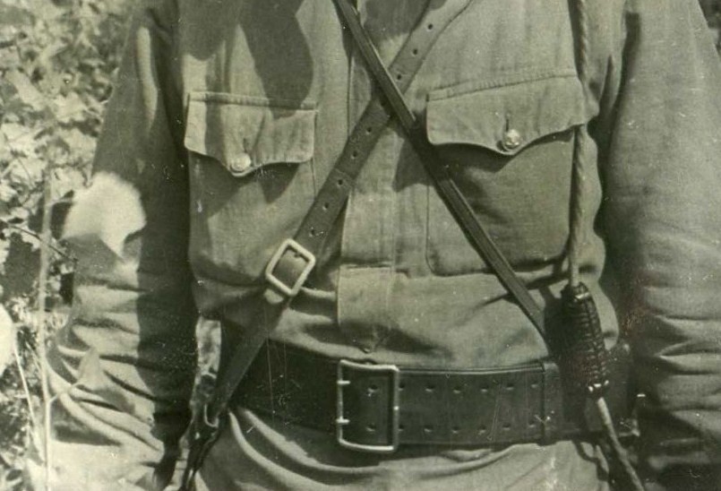 При надетом поясном ремне с портупеей нижний угол планки гимнастерки, как правило, почти "лежит" на ремне.